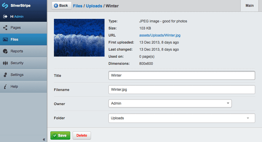 If you have the CMS module installed, you can manage files, folders and images in the "Files" section of the CMS. Inside this section, you will see a list of files and folders like below:
