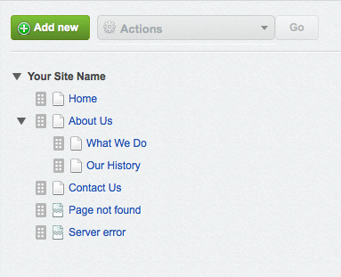 To create a new page, click the "Add New" button above the site tree.