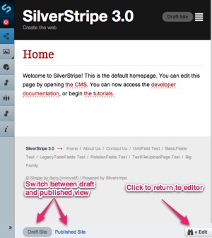 - These buttons allow you to save your changes to the draft copy, publish your draft copy, unpublish from the live website, or remove a page from the draft website. The SilverStripe CMS workflow stores two copies of a page, a draft and a published copy. By having separate draft and published copies, we can preview draft changes on the site before publishing them to the live website. You can quickly preview your draft pages without leaving the CMS by clicking the "Preview" button.