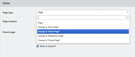 Changing the page type of the Home page#